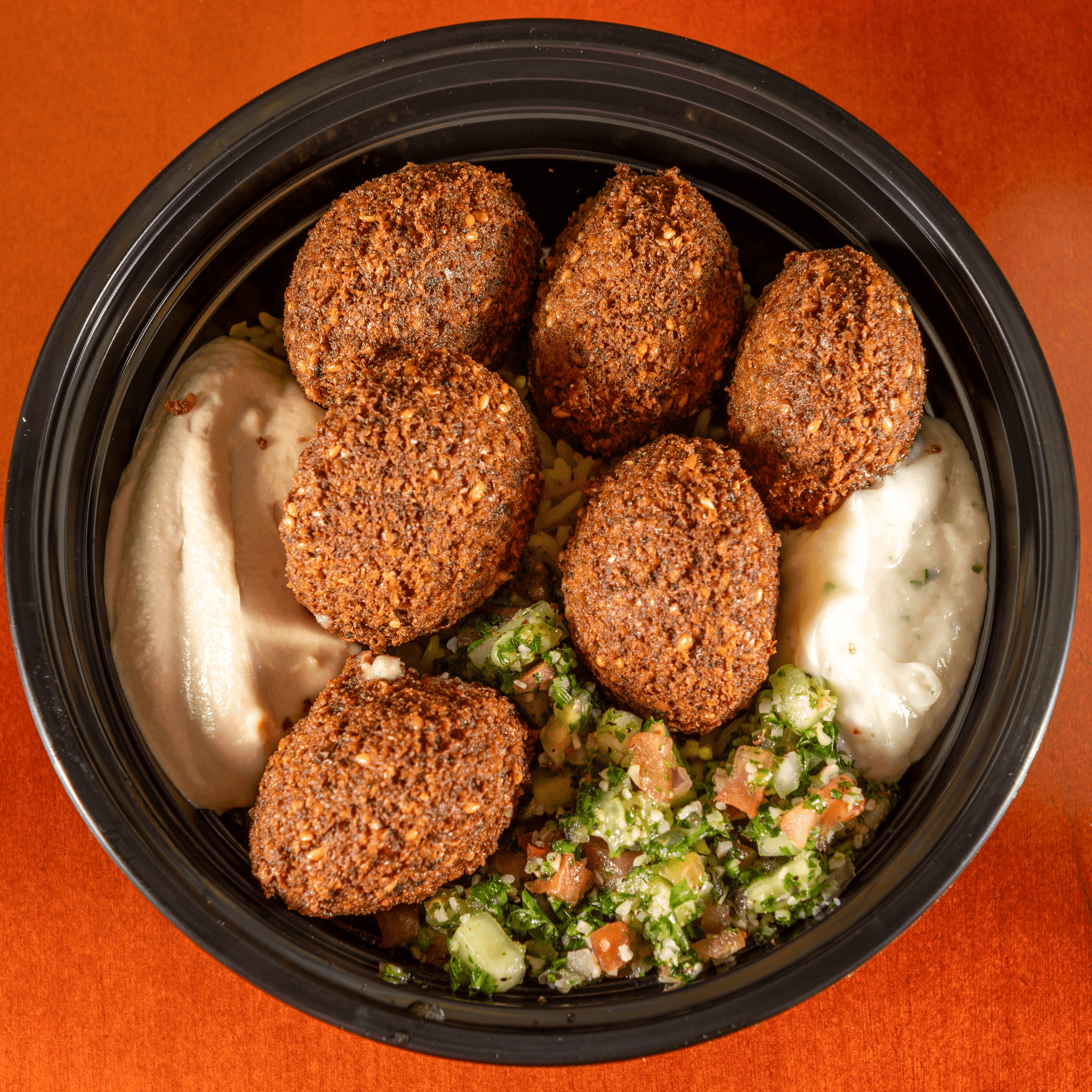 Freshly House-Made Falafel, Hummus, Tabuli, and Tahini