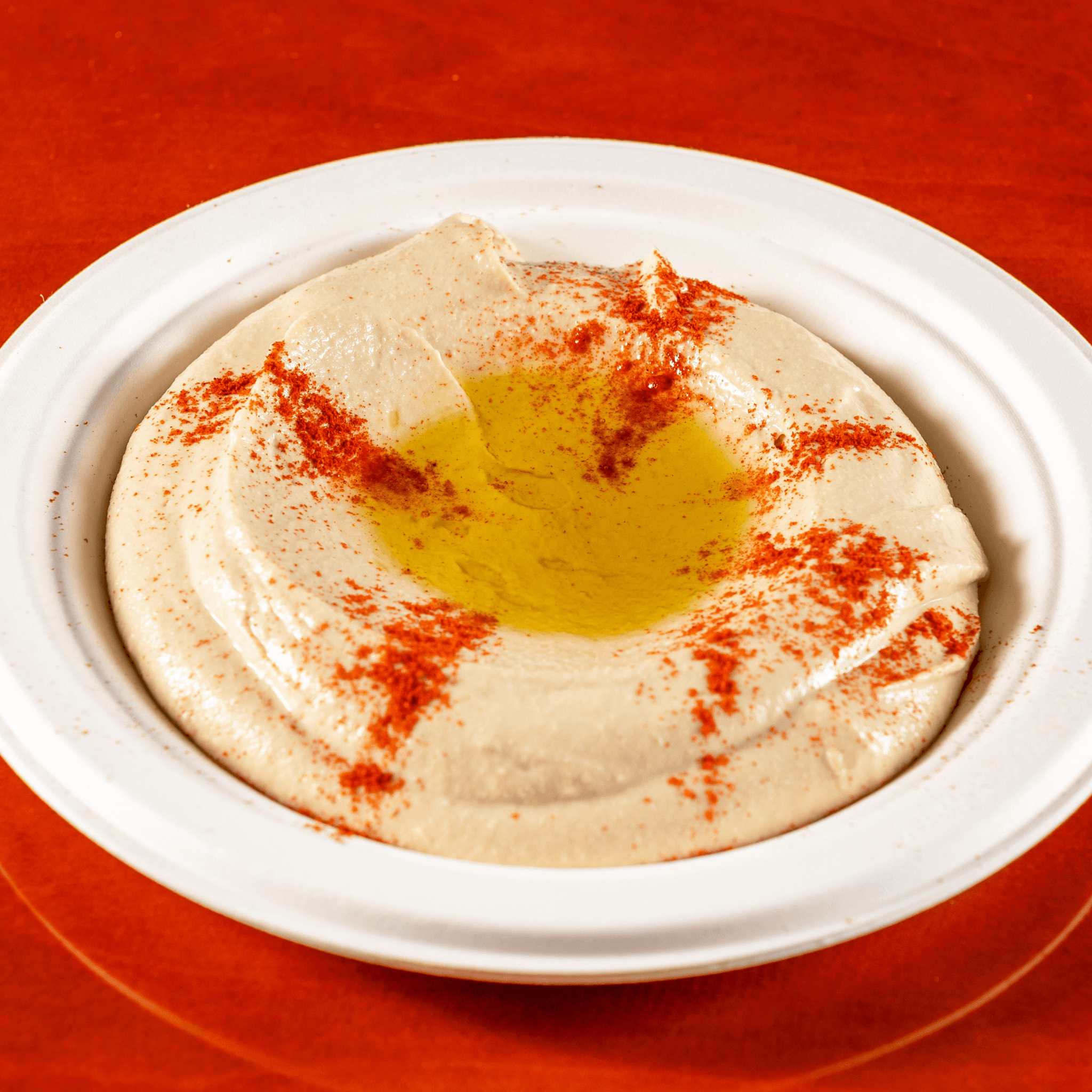 House-Made creamy chick pea dip (contains Tahini/sesame) sprinkled with paprika and drizzled with organic extra virgin olive oil. Small size includes 1 pita. Regular size includes 2 pitas. 7” Bowl includes 4 pitas. 9” Bowl includes 6 pitas. Pitas are served warm and cut in half.