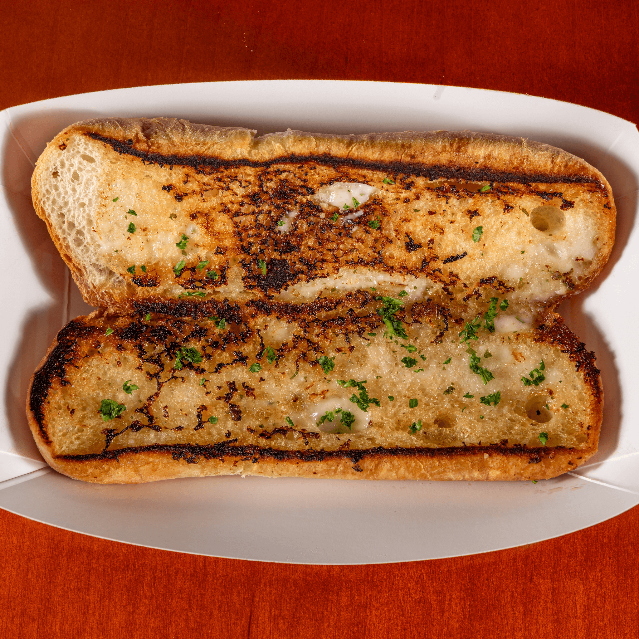 French bread slathered in our House-Made Garlic sauce (contains mayo) and grilled to a crisp.